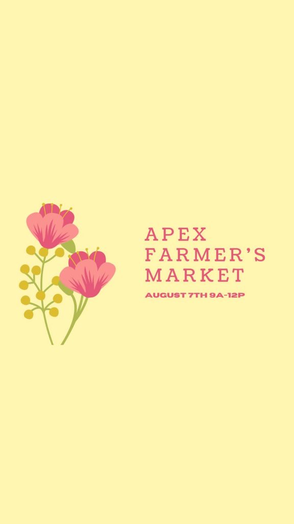 Shop with us and local artisans at the Apex Farmer’s Market on August 7th from 9a-12pm!